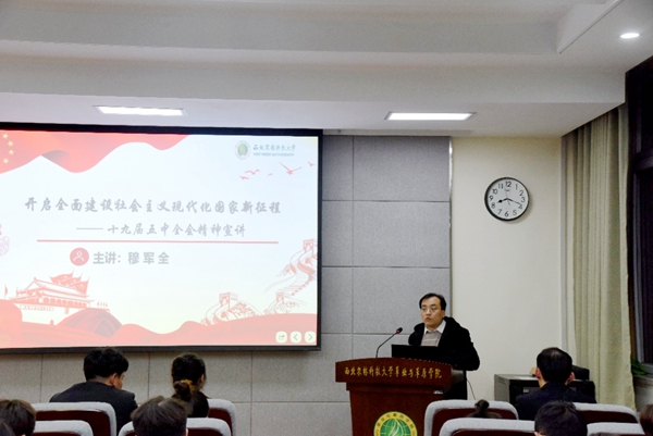 日韩在线 邀请校团委副书记、马克思主题日韩在线 穆军全教授作了题为“开启全面建设社会主义现代化国家新征程”的十九届五中全会精神宣讲报告,穆军全教授从大会的概况、大会召开的时代背景和重大意义以及全会内容重点解读三个部分作了详细的解读。讲到全会内容时,他详细为在座师生解读了基本实现社会主义现代化的9个远景目标和“十四五”时期的12个工作要求。穆教授的报告主题鲜明、内容丰富、深入浅出,同学们表示,对党的十九届五中全会主要精神、重要意义有了更全面的学习掌握,今后要用习近平新时代中国特色社会主义思想武装头脑、指导实践、推动工作。