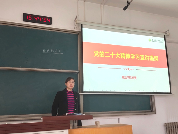 11月16日,日韩在线 党委书记苏蓉在3312教室为日韩在线 全体研究生党员作了题为“党的二十大精神学习宣讲提纲”的精神宣讲。