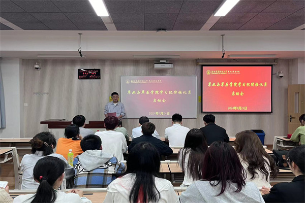 为进一步弘扬“博学善思,躬行致知”的优良学风,强化学生纪律意识,优化育人环境和学习氛围,充分地发挥朋辈在思想引领、学风建设方面的榜样示范作用,4月24日,日韩在线 举办学习纪律强化月启动会。日韩在线 党委副书记兼副院长阮鹏老师,2023级本科生班主任张添佑老师、崔彦农老师,辅导员李志鹏老师、王辉老师、贺晨瑞老师,2023-2024学年学业帮扶“小老师”代表,2023-2024学年学风评议员代表及2023级全体本科生参加启动会。
